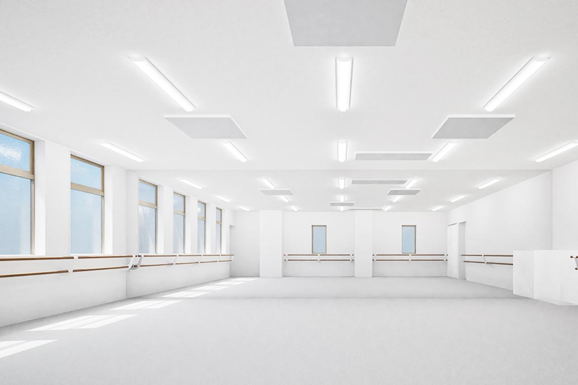 鏡、バー、音響システムはすでに設置されているので、初期コストの負担なくすぐにクラスをスタートできます。