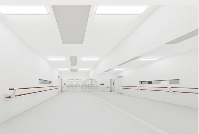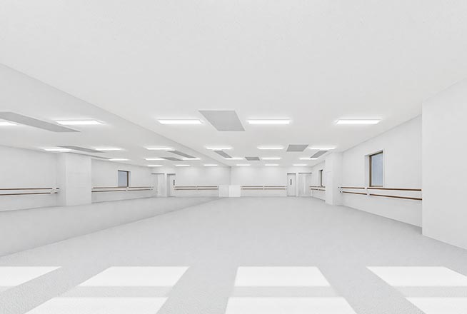 名古屋市久屋大通にある京町ダンススタジオは、床面積103㎡×天井高3.2mの広々とした空間に最新設備を完備しています。
